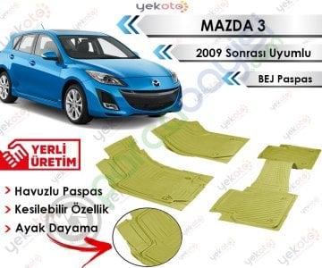 Mazda 3 2009 Sonrası Uyumlu Havuzlu Kesilebilir Bej Paspas