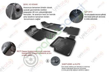 Paspaslar yan yüzeylerinde bulunan yaklaşık 3 – 5 cm kalınlığından bariyer çıkıntısı sayesinde, paspas dışına çıkabilecek su, toz, çamur vb. maddelerin aracınızı kirletmesini engeller.
